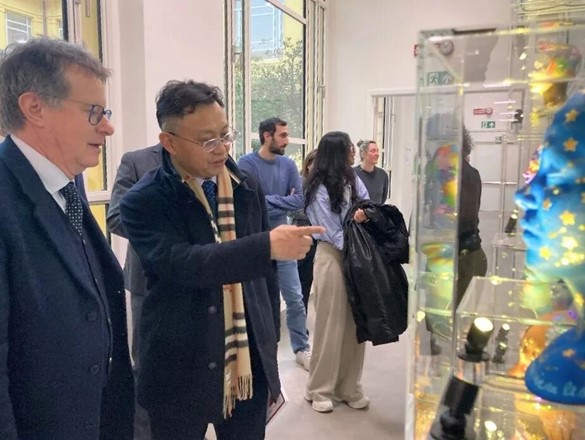 1月27日,郑加麟教授、刘薇博士首站到访帕维亚大学,与国际事务副校长Matteo Alvaro教授、生命科学事务代表Lorenzo Cavagna教授、医学与外科学院院长Cristina Tassorelli教授、亚洲与大洋洲事务代表Marco Racchi教授等校院两级核心成员深入会谈,并实地考察临床技能实验室及远程双向手术教学系统。帕维亚大学医学专业位居意大利前十,其开设的全英文授课项目为国际学生流动与课程共建提供了优质平台。双方围绕全英文授课项目的学生交换机制、课程衔接、临床实习等操作性议题深入交换意见。