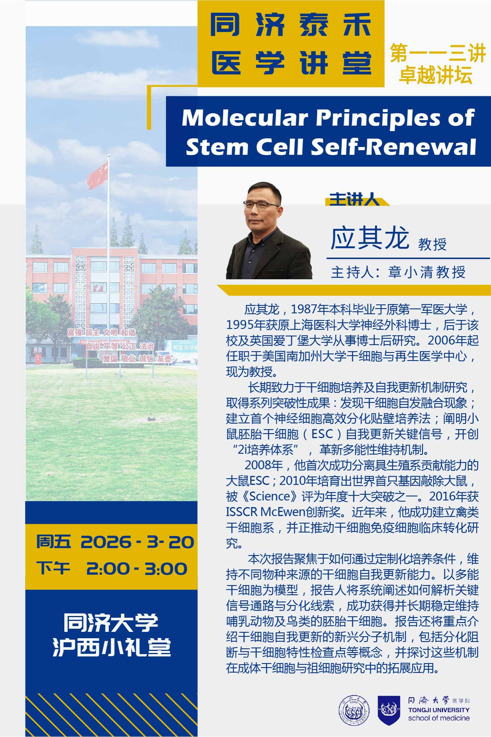 泰禾医学讲堂第113讲:Molecular Principles of Stem Cell Self-Renewal